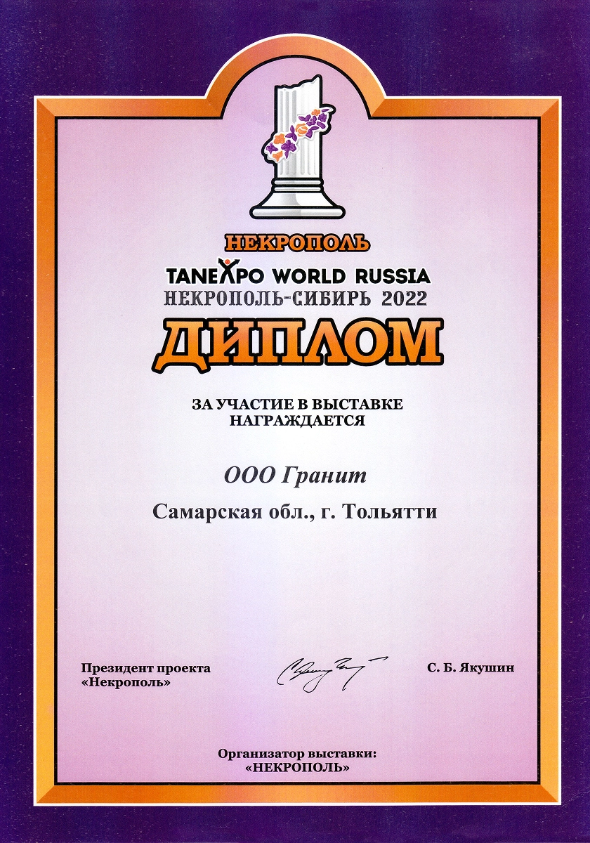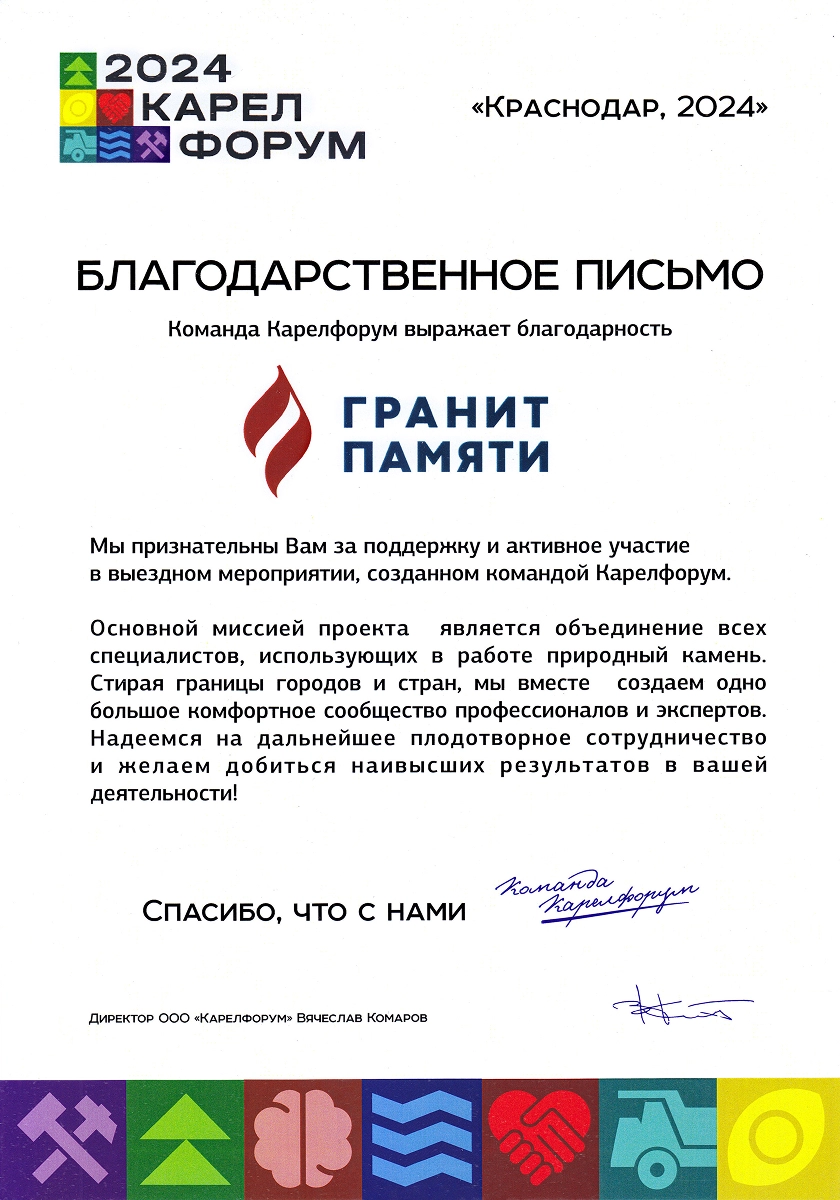 Ежегодные экспоненты профильных выставок в России «Некрополь», «Карелфорум», «Белый Тополь», «Ритуальные услуги. Камнеобработка» и в Белоруссии «Мемориал. Камнеобработка». Деятельность компании отмечена отраслевыми наградами: победители в номинации «медийность» в конкурсе «Золотая медаль Некрополь 2021», победители народного голосования на звание «Лучшая франшиза 2020», обладатели «Золотого скарпеля», номинанты на звание «Лицо Отрасли Некрополь 2020». Сотрудница компании признана «Самой обаятельной в каменной отрасли 2022».